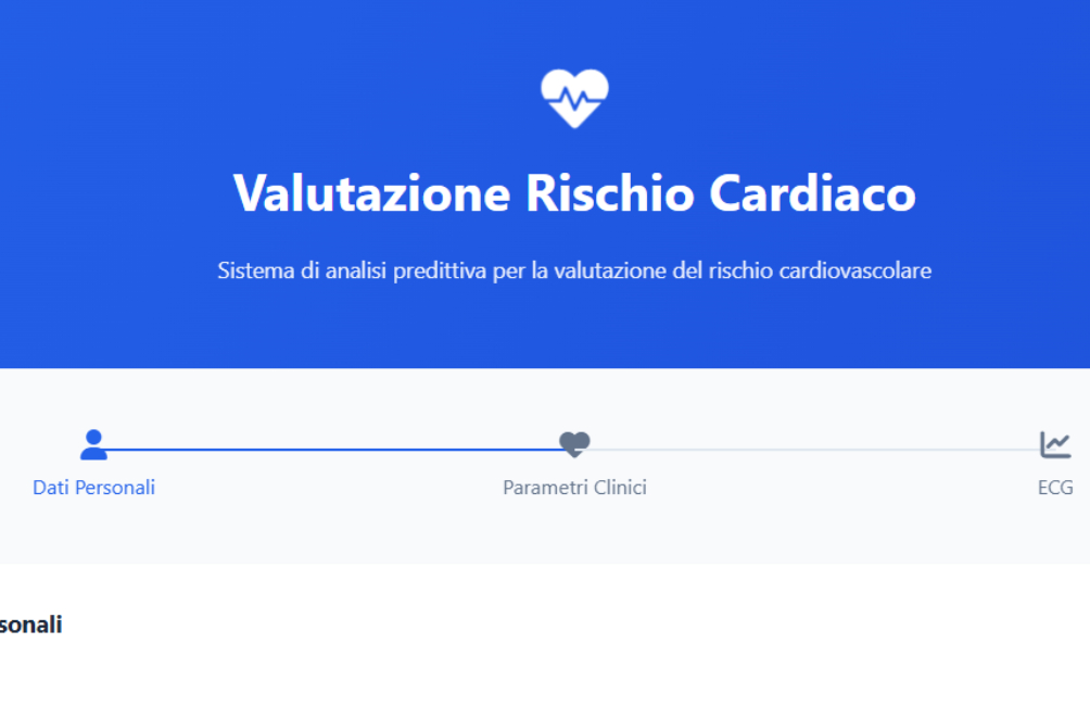 Valutazione Rischio Cardiaco. Sistema di analisi predittiva per la valutazione del rischio cardiovascolare. Basato sul modello di Machine Learning da me addestrato. L'applicazione รจ tratta dal mio